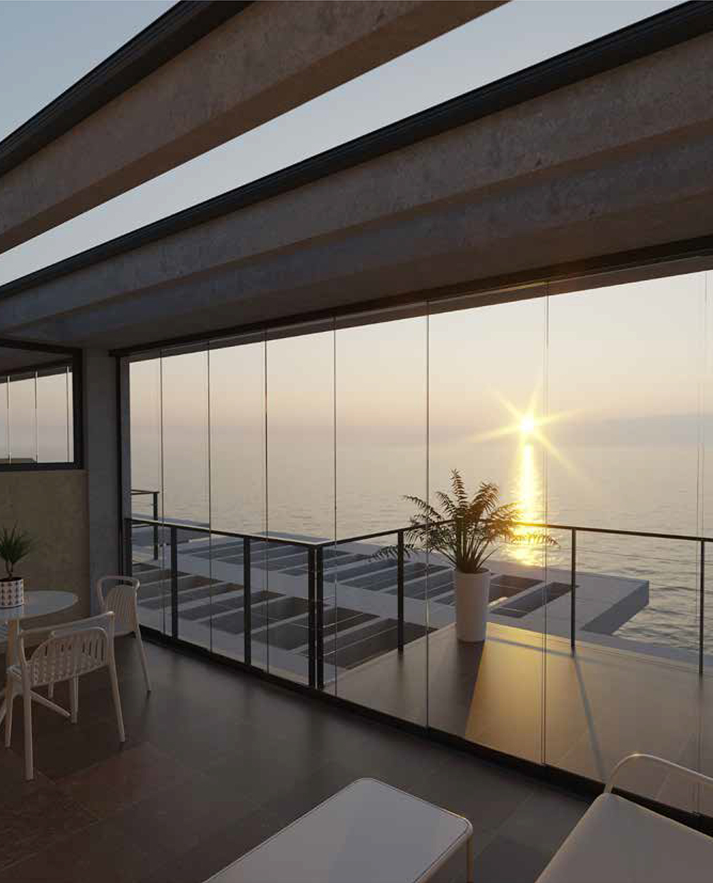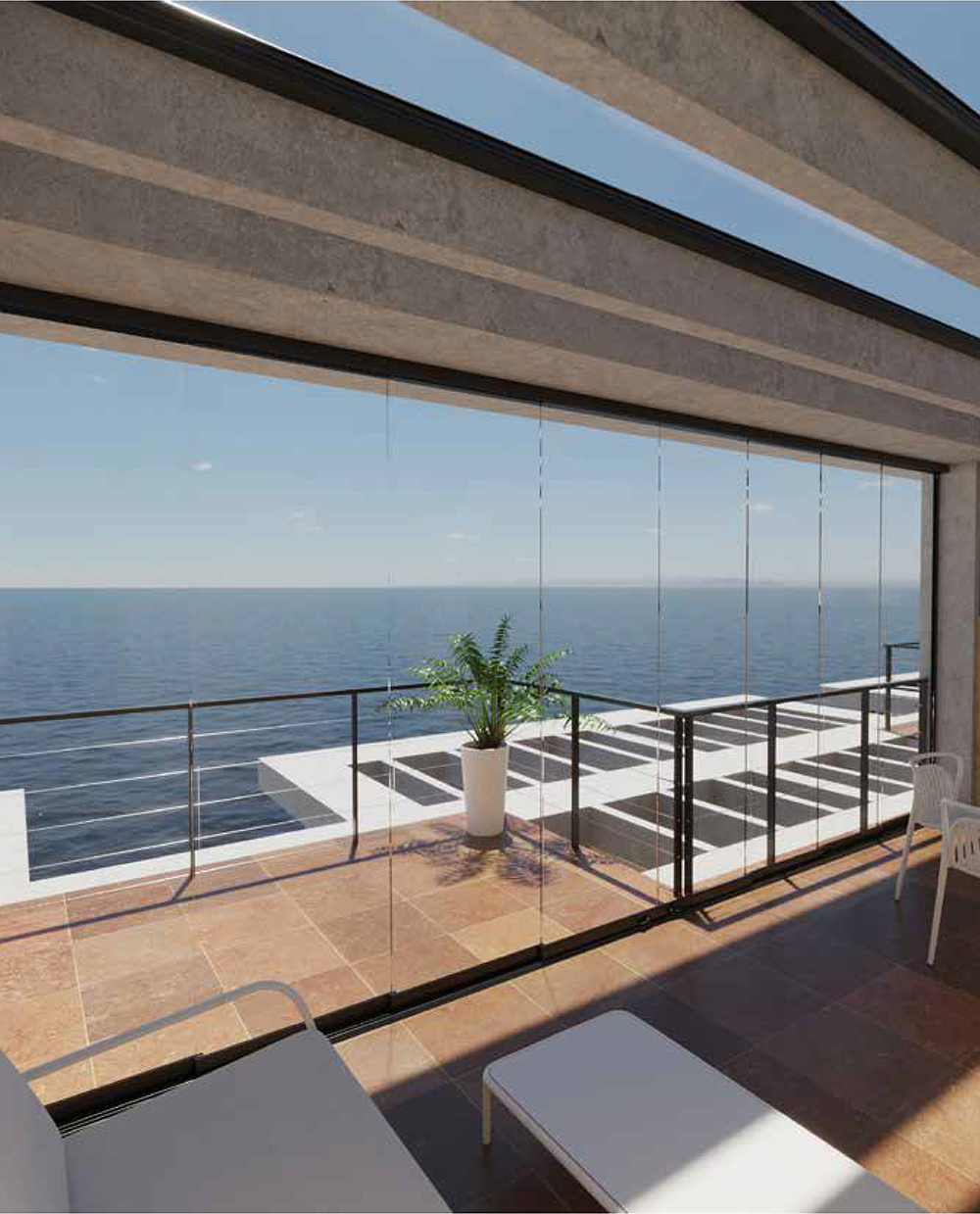 Grazie al suo design essenziale e alla qualità dei materiali utilizzati, la vetrata panoramica scorrevole, rappresenta la soluzione ideale per la chiusura di verandeterrazze, balconi, porticati e pergole, migliorando comfort, luminosità e fruibilità degli spazi durante tutto l’anno.